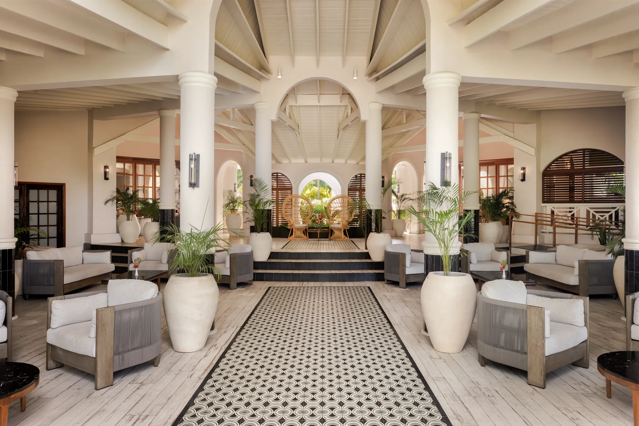 Resort lobby with chairs and tables